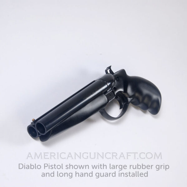 Received my Diablo! This little cannon was well worth the wait! It is now my favorite weapon! Heavy for its size but nice because it helps tame the recoil of this beast! The fit and finish is superb, with no machining marks present anywhere. the bluing is flawless. AGC also included a nice ramrod which was not mentioned at time of purchase. After firing mine over a hundred times i have noticed no significant wear on any of the parts. The shot patterns very well to have such a short barrel. The only negative thing i have to comment on is the short grip. It is functional and handles well, but i have large hands and theres nothing to wrap my pinky finger around. I do carry mine in my car and it fits perfectly in my cupholder 🙂 Two thumbs up for American Gun Craft!!