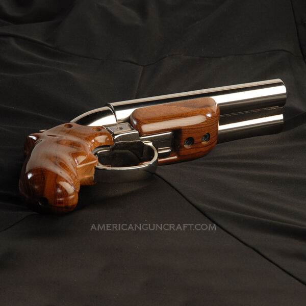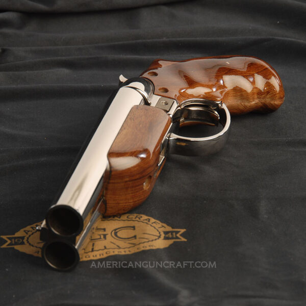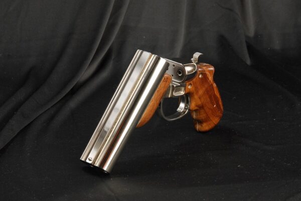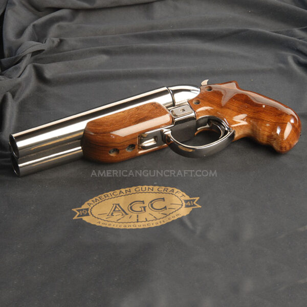 I just want you to know that I received my double barrel 12 gauge pistol. It’s beautiful. I love it. Thank you so much for such a unique weapon. I’m attaching a picture. Feel free to post on your website.
